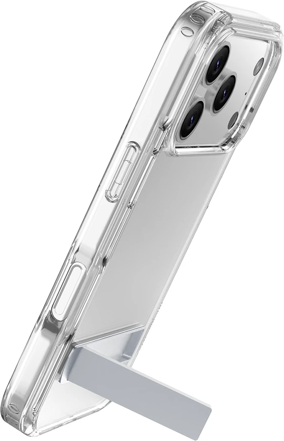 Clear Stand ist die transparente Schutzhülle mit integriertem Standfuß – ideal für freihändiges Telefonieren, Streaming oder Arbeiten. Sie besteht aus einem harten Rücken und stoßdämpfendem Gummirahmen und schützt zuverlässig vor Stößen und Stürzen. Erhöhte Kanten schützen Bildschirm und Kamera. Die antibakterielle Oberfläche und das Anti-Vergilbungs-Material sorgen für dauerhafte Hygiene und Klarheit.